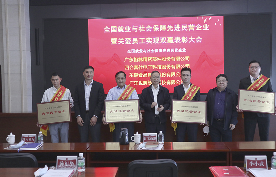 2023年2月21日,全国就业与社会保障先进民营企业暨关爱员工实现双赢表彰大会成功举办,东瑞股份(股票代码:001201)凭借在履行社会责任、增加就业岗位、构建和谐劳动关系等方面的突出表现,被授予“全国就业与社会保障先进民营企业”称号。东瑞股份副总裁李小武代表公司接受表彰领奖。