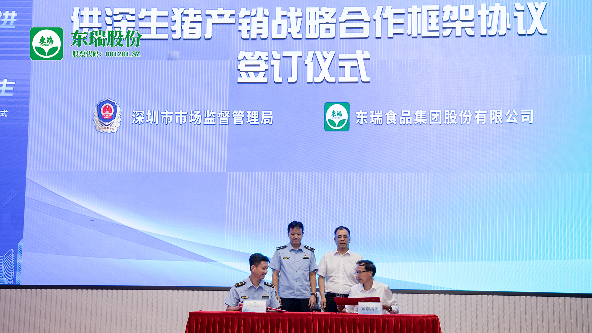 合作铸辉煌,携手开新篇。7月12日下午,东瑞股份与深圳市市场监督管理局供深生猪产销战略合作框架协议签约仪式在深圳市工商物价大厦隆重举行。