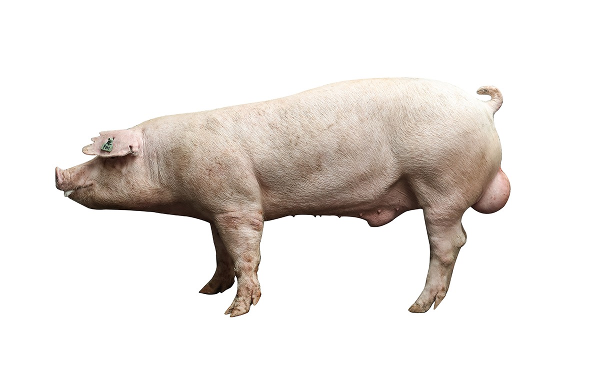 体型高长、四肢粗壮、皮薄、后臀丰满、腹线平直、奶头分布均匀、肌肉感强。